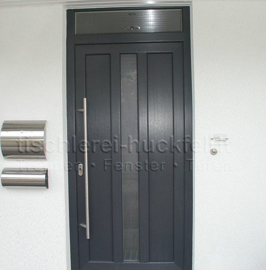 Konstruktionshaustürmit festem Oberlicht. Türblatt mit 2 Sandwichfüllungen und einer schmalen Scheibe
